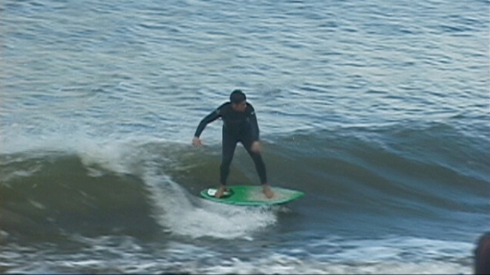 Jamie, transitioning from his woodie to a foam board @ Hoopers – courtesy of Colin |