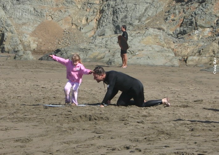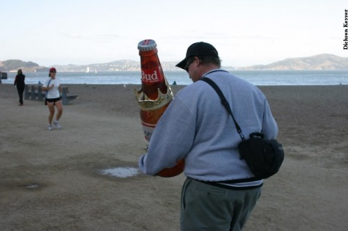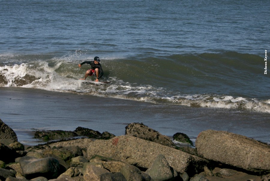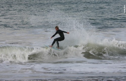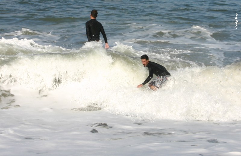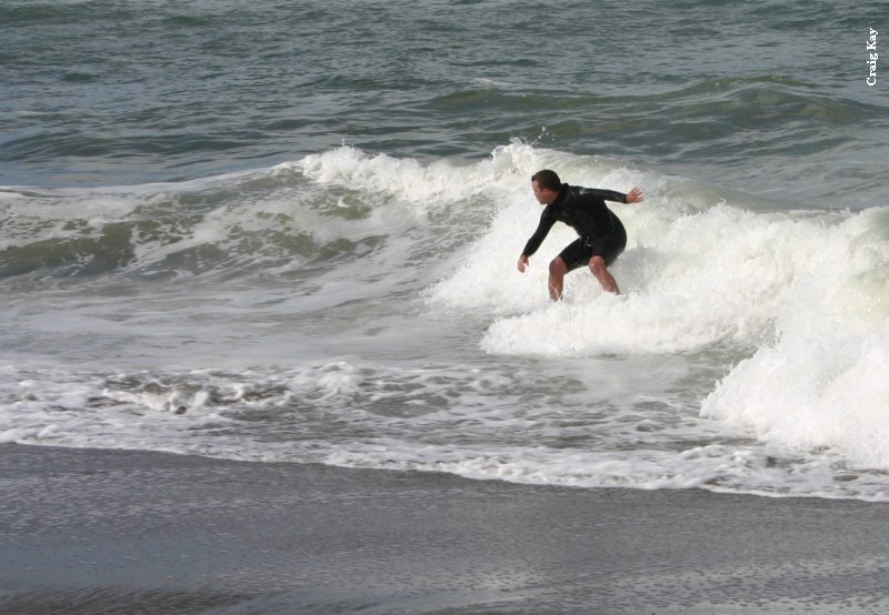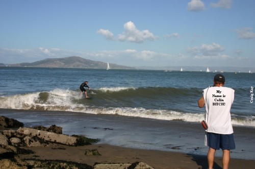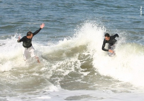 Saturday morning, the usual suspects gathered at Baker to find no dub and somewhat decent conditions at Baker, without much notice of swell. The buoy was only 5.9’ at 5:50 in the morning, and I was worried. Since Baker looked decent and there was so much forecasted dub, we decided to get in at Baker and skim while we could. Paul got early points for first beer, even with Fenster double fisted at 9:30. Daver got ride o’ the morning (till Heins’o-matic got in the water). It was pretty fun right in front of the parking lot, but as tide came in, the waves started to trough and we were just getting blown up on every wave.