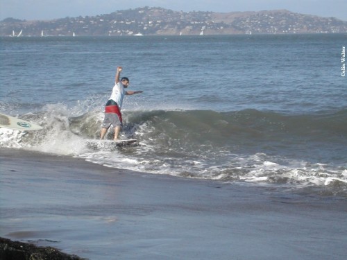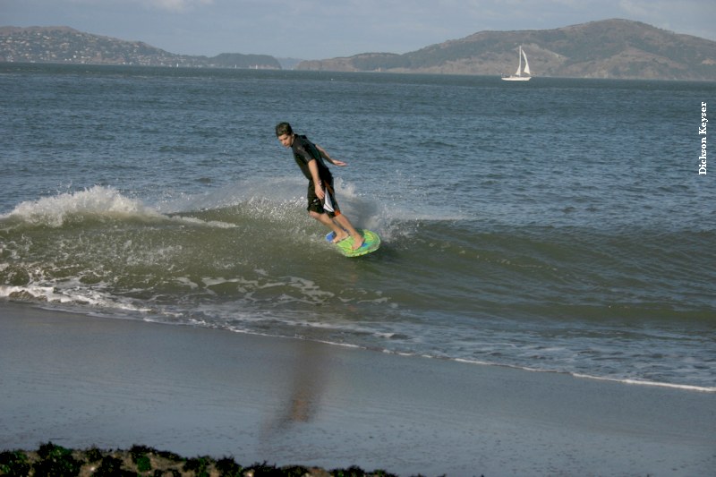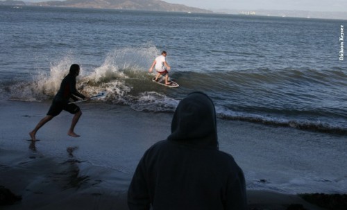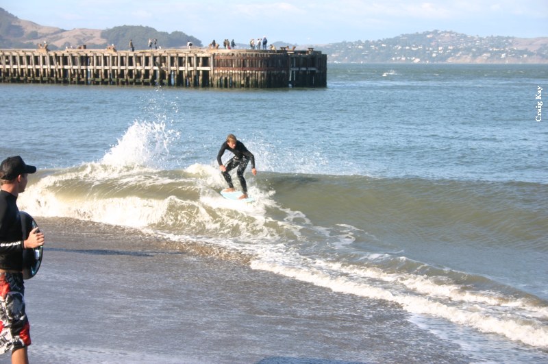 We decided to give some general rules on priority, and then let everyone go in a standard Cramik free-for-all. Again, there were about 16 competitors, all at once skimming. The waves really decided to coincide with this 40 minute heat and there were plenty of good waves for everyone to hit. It was UNBELIEVABLE! Set after set rolled through, with Thomas getting 3 or more good ones that took him from the point all the way to main beach. Ephrin secured his best wipeout wall clock. The sun was still out, and spectators lined the walking path along the point to catch a glimpse of NorCal’s finest tearing it up.