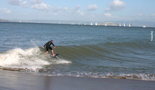 For the 3rd year in a row, we held the Cramik skimfest. This year, not only was it scheduled later (the prior 2 years it was held in August), but the location was floating this year (last 2 years it was at Limantour). The idea was to find out the beach with the best conditions on the day leading up to the fest, and pick the beach on Friday, post it online and hold it Saturday. This resulted in 2 problems. First, was that a very large swell was scheduled to hit on Saturday and very large swells and skim usually don’t mix on most beaches. The other problem was that the forecast was for rain, which is not a big deal, but also a lot of dub, which is a major problem. Based on this we decided to have everyone meet at Baker in the morning and then hopefully go to Lefts in the afternoon. This led us to other logistical problems such as Lefts being very fickle, we weren’t sure the swell would be quite large enough, and even if it was Lefts more often than not does not have enough sand for the first swell of the season.