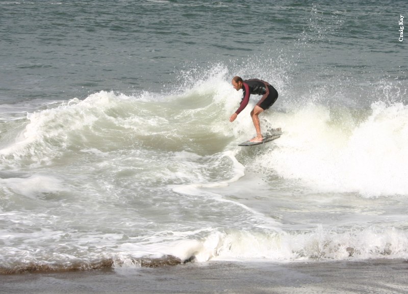 “Yeah that was sooo much fun. Definitly the greatest time I’ve ever had a skimfest/contest. It was soo freakin awesome to have the weather and swell all come together and make for an epic early season Left’s session. It was definitly pretty tricky to try an figure out “the rules” and wave priority for the contest, but overall I think it worked out pretty damn good. Really there was nothing to complain about, even from my usual pesimistic mouth, and we couldn’t have asked for a better day. A big thanks goes out to everybody who helped organize the event, the people who put together the awesome prizes, and especially the judges who made the ultimate sacrifice and just sat out of the line up for the contest while watching some nice sets role through a place that only breaks a couple weeks out of the year. I honestly don’t know how the hell you guys were able to hold back the urge to skim in such fun conditions (Colin, Tom, and Potter), but thanks a lot for doing it and allowing us competitors to get our fair share of waves when you guys could have been out there tearing it up. I couldn’t believe barely anyone was skimming after the contest when the biggest sets were coming in more consistantly. I still wanted to skim, but didn’t wanta push my luck since my girlfriend was nice enough to stay out there the whole day and take pictures. Thanks Nikki” – Bodega Boone