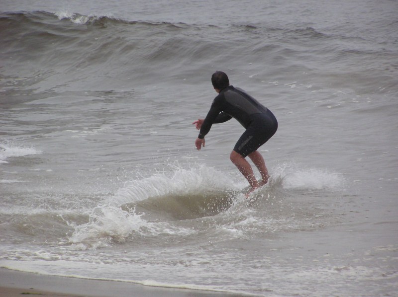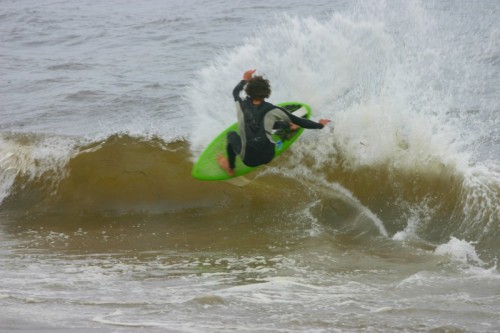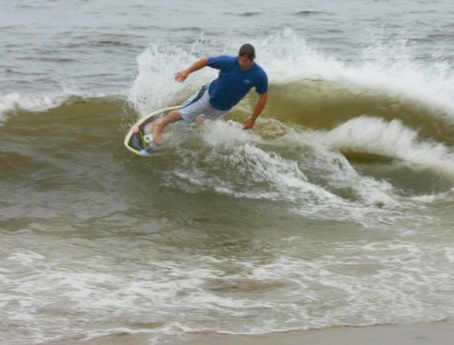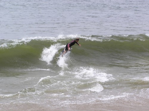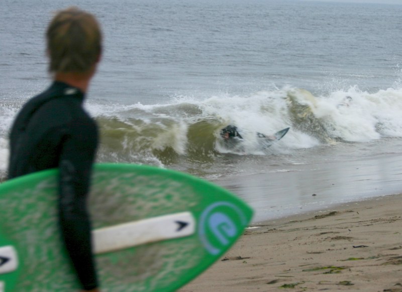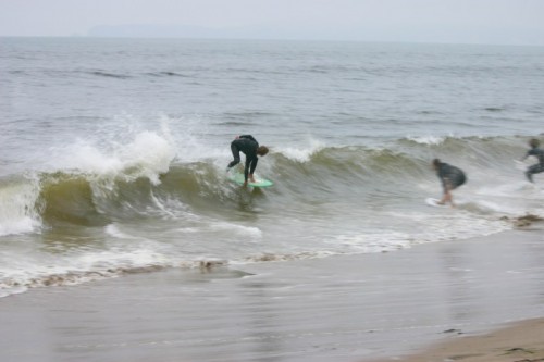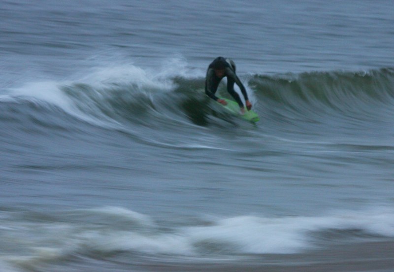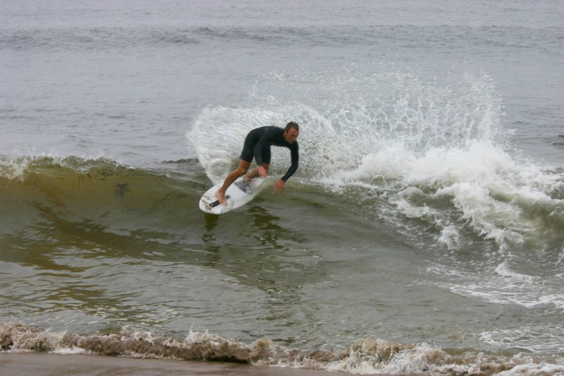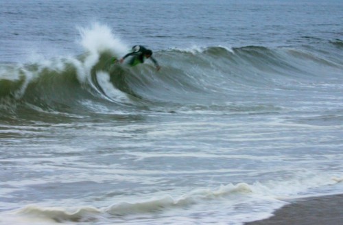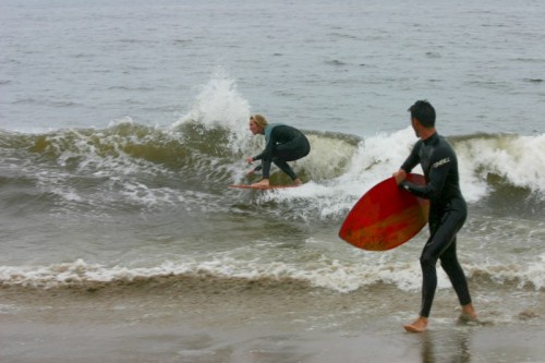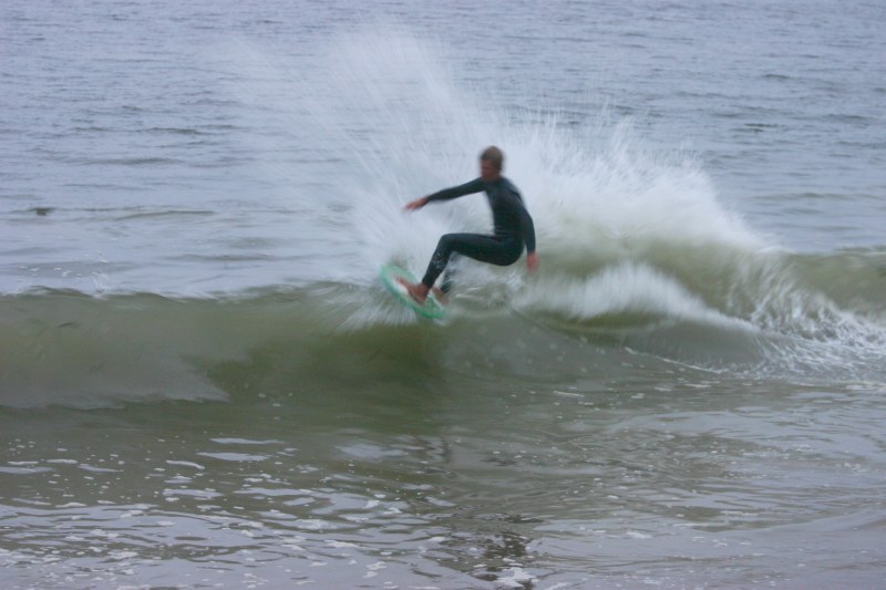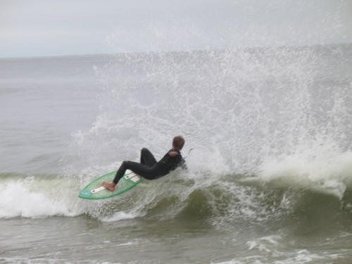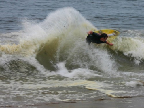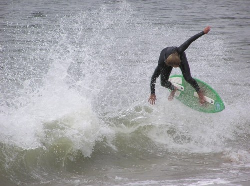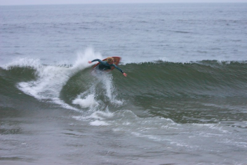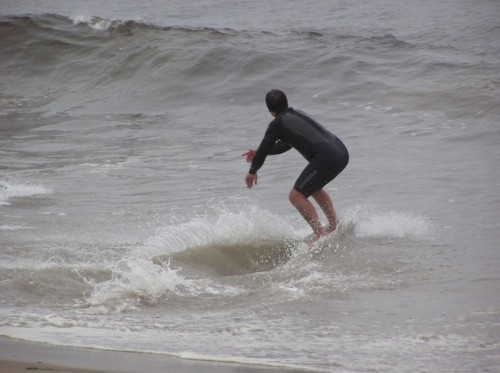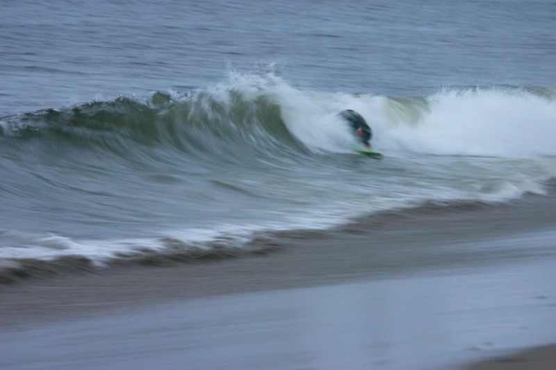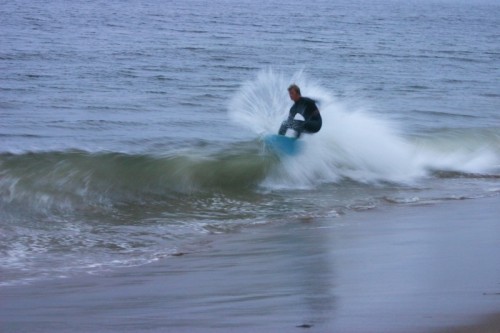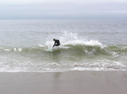 Saturday morning I arrived around 9 to find the Fenster finishing his fishing expedition, empty handed which was weird because on Wednesday the fish were going nuts. In any event, Deebo had already arrived, suited, and was skimming about a mile down the beach. Directly in front it looked low-ish and weak – but not awful. Josh, Daver, Efrin, Neddy Bumbo, & Will arrived and we decided to get in. We headed down to where Deebo was skimming earlier and scored the better waves of the day. The beach was much higher and steeper down at the east end and we were soon joined by 57, Ozzy, and a multitude of others. A good fun session was had down there till about noon when the tide started to drop and the dub kicked up enough to make it sloppy.