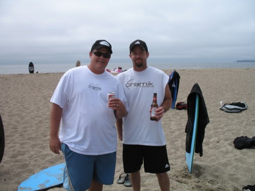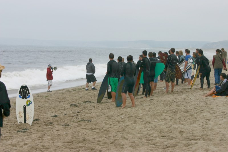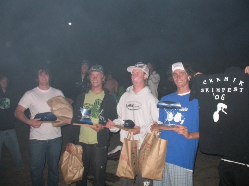 The semi final provided more of the same craziness. There’s a reason that normal competitions run only 4 guys at a time. With 10 going at once, it was still major pandemonium with 57 (a judge) growing and moaning about how difficult the 4 & 5 positions were going to be determined since it was so close. It also proved that you cannot run Mega Heats with a standard judging system – it would be impossible. You would never have enough time to write scores down. The judges judged on the basis of “overall impression” – another cramik staple. Ryan continued to dominate the semi’s and had it ended there, he would have taken home 1st. Ben was also coming alive and tearing the poor little Limantour waves in ways that it had never seen in it’s lifetime. Corey, the consummate joker, killed with a fluid style and nonchalance that makes it appear as though he’s not even trying – truly one of the most enjoyable skimmers to watch. Skyler was killing throughout the Mega Heat and the semi’s but was equally matched by Deebo. In the end, it was a horribly hard decision to make. I personally thought Deebo got more good waves in the semis, but Skyler had more in the Mega Heat (not just more than Deebo, but more than most of the guys who made the semis). Although there was some sentiment towards Skyler because he had come from so far away, we had to discard that and be impartial and after a judges vote of 3 to 2, Deebo was in and Skyler was out. This was by far the hardest judging decision to ever face the cramik.