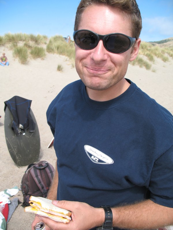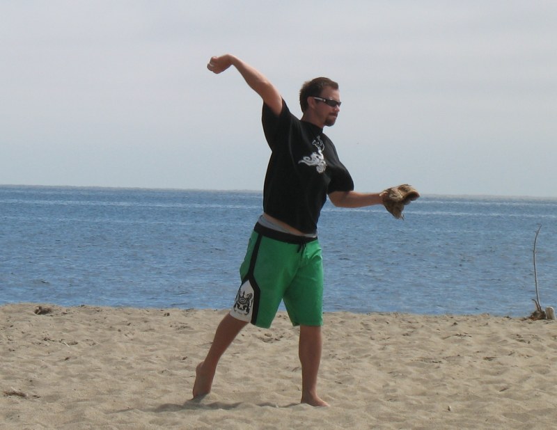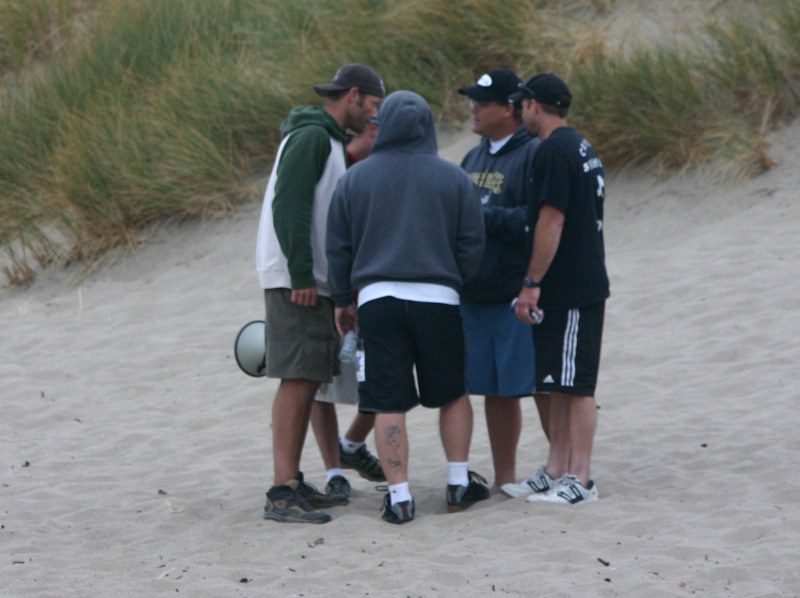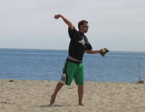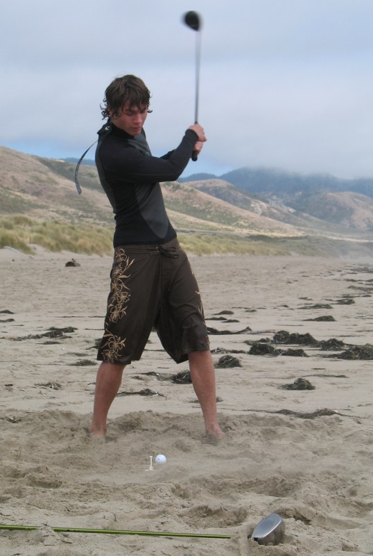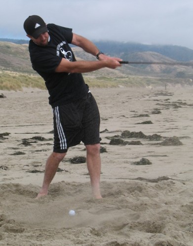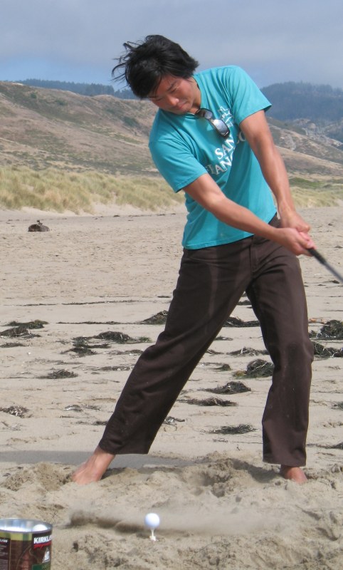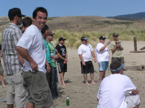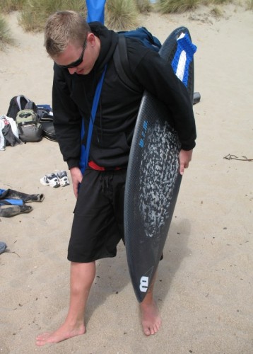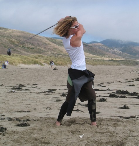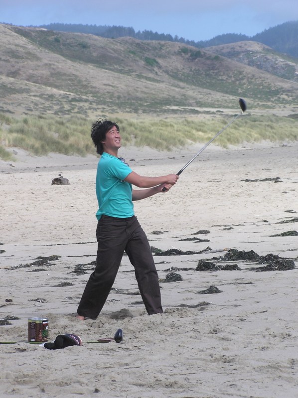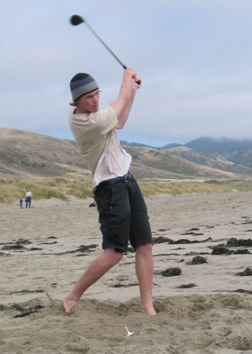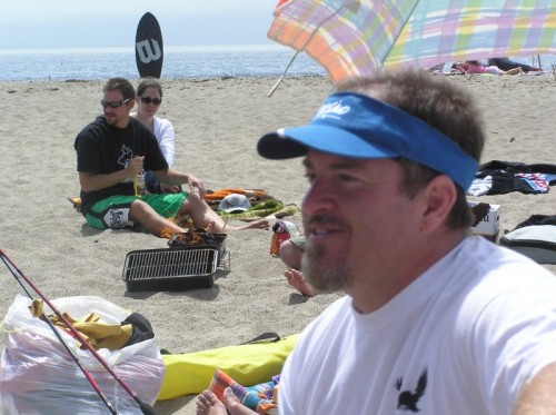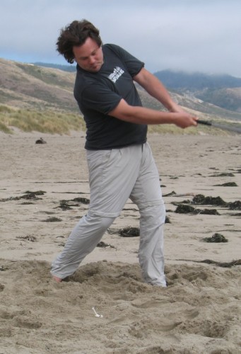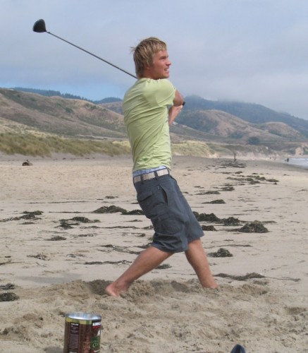 The usual afternoon activities then began as more people started to arrive and wait for the tide to come back in which was scheduled for 8:20. We hoped to start the event (this is not a contest) around 6:00. In the meantime, we held the long drive contest and everyone got involved. Fenster started it off with a bomb, but he took himself out of the running to judge, though he would have easily won the event in all likelihood. Many of the skimmers had trouble with this sport and it was fun to see all the whiffs. Making it to the finals with some solid bombs were Ben Hagar, Dad (aka DAK), Patrick (Manchild), Tom (Ozzy) & Daver with Manchild taking top honors (we think! – it’s kind of a blur) and a