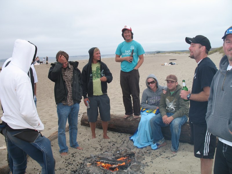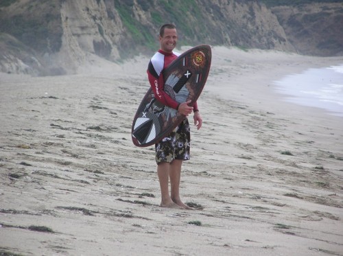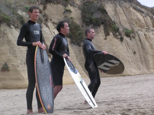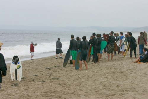 Although there was already a substantial crew already on hand, at around 3 o’clock there began a steady stream of skimmers showing up. Bike Mike showed up to donate his traditional beer prizes, and then a bunch of skimmers showed from Santa Cruz including Corey, Ben, Geoff, BH, Ryan, Gary, Skyler, Skimkook (Timmy C) & Cole’s BBQ among others. Ryan Parola donated some of his Riding Brainwaves DVD’s and a megaphone which proved to be a lot of fun for me, and a lot of pain for others to endure. We decided to run the event at 6:30 and after much discussion and argument, decided to run the traditional Mega Heat – another cramik tradition. In cramik’s view, we don’t like to harm the environment, so we always try to run a non-paper event. This means no judges sheets, and no way could we have an organized heat table of any sort. After all, this is not a contest. The mega heat was just completely insane. It was virtually impossible to count how many skimmers there were packed into roughly a 40 yard wide area. We guess there were probably around 35-40, could be less, could be more. The closer set waves would yield no less than 15 guys at a time. The larger outside set waves would yield about 4-6. Ryan Parola dominated the Mega Heat with his drift daddies reaching and making most of the furthest out set waves that Limantour had to offer. Mariani was also very solid in the first heat on the smaller closer waves continually getting the best of the crowd on countless frontsides and backsides. David stole the 2nd half of the mega heat with a number of solid wraps.