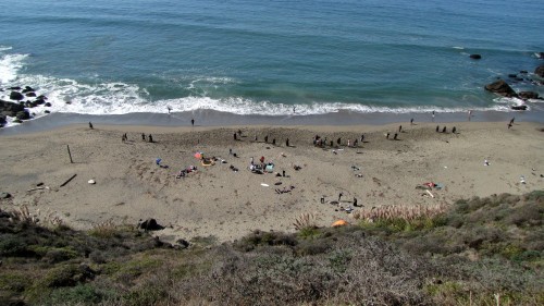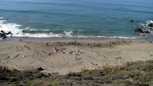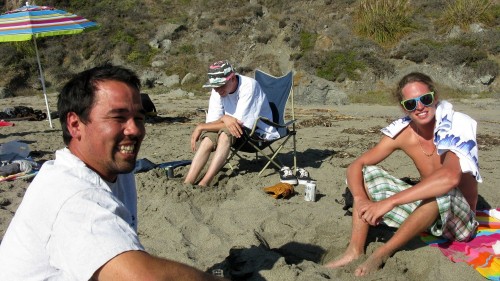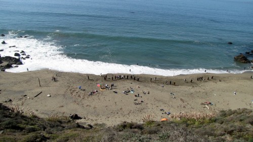 Getting to the bottom of the trail we see a tent right at the bottom and we’re thinking, ”that’s kind of stupid to camp right there” until we found out that it was Beer, Cadiz, Sealy, & Rene who drove up from LA/Santa Barbara and arrived at 2:30 in the morning after driving the last several miles at 20 MPH in split-pea thick fog, going to a place they’ve never been to before and then hiking down the steep, narrow trail tired as hell. If it were me, I probably would have pitched tent right in the middle of the street!