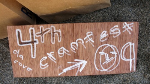 Excratible. That’s all I can say. Last year’s cramikfest was lookin icky, due to conditions at most of the local beaches not looking so hot, when a day before the event Dustin & Kelly (I think) found The Cove. Last year’s event then went from uh-oh to stoked, as good waves and great weather greeted all who showed. This year, in the midst of Indian Summer and good weather and waves at many of the local beaches leading up to the event, there raged a grand debate as to where this year’s cramikfest would be held. BUT, day after day leading up to cramikfest, Deebo and VacaDoug were updating us on how The Cove was super set up for the event. The decision was made on Thursday and the issue was laid to rest: The Cove.