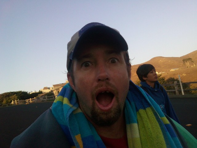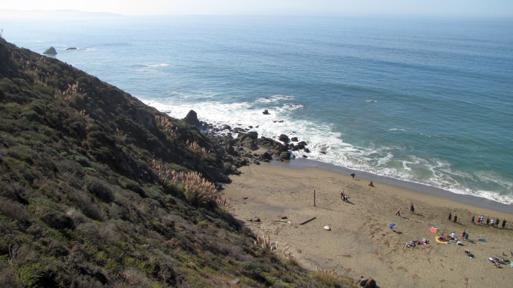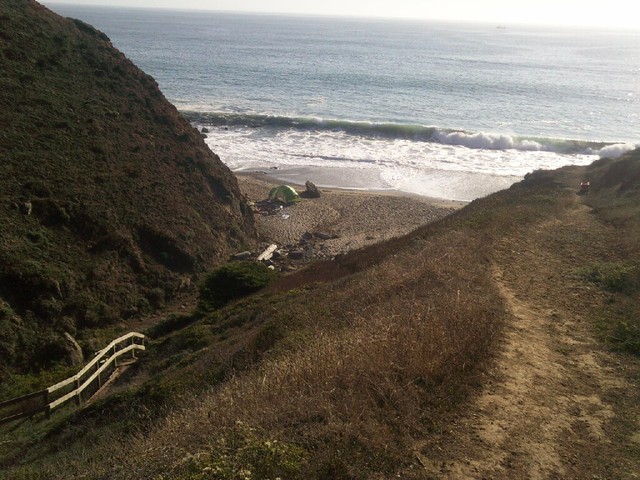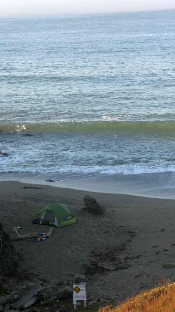 Getting to the bottom of the trail we see a tent right at the bottom and we’re thinking, ”that’s kind of stupid to camp right there” until we found out that it was Beer, Cadiz, Sealy, & Rene who drove up from LA/Santa Barbara and arrived at 2:30 in the morning after driving the last several miles at 20 MPH in split-pea thick fog, going to a place they’ve never been to before and then hiking down the steep, narrow trail tired as hell. If it were me, I probably would have pitched tent right in the middle of the street!