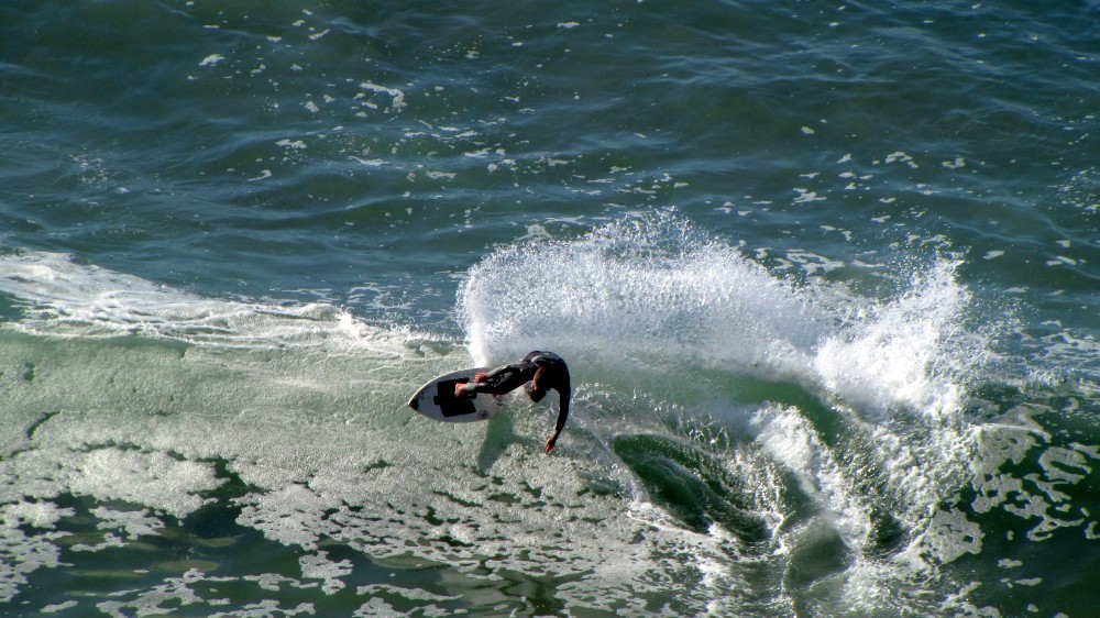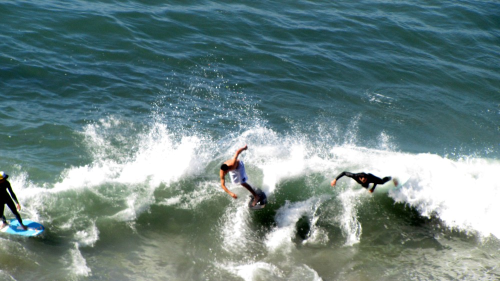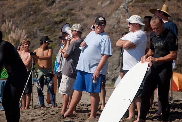 With the heats under way, led off by a nice solo backside wrap by Johno, the action was fast-paced and crazy as always. The waves were fantastic, with 1 to 4 foot waves on average with set waves that were maybe head high. Colin was great at getting names of those we didn’t know who were tearing it up, like Rene, Seabass, and dude with black shorts. Ozzy was great at holding the megaphone while I babbled, and Craig was expertly chiming in on the mini-mega (yes we had dual megaphones!).