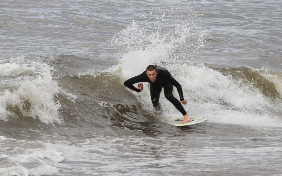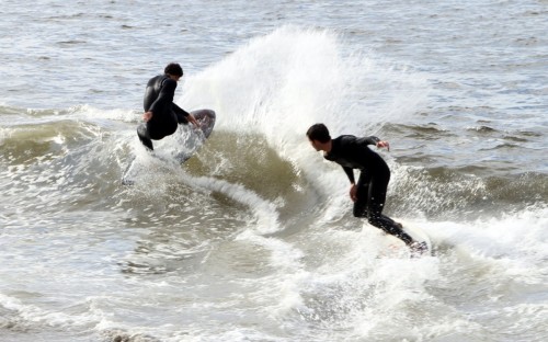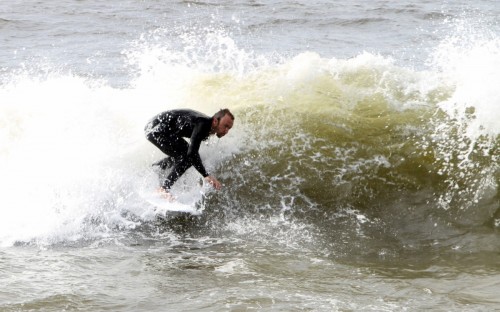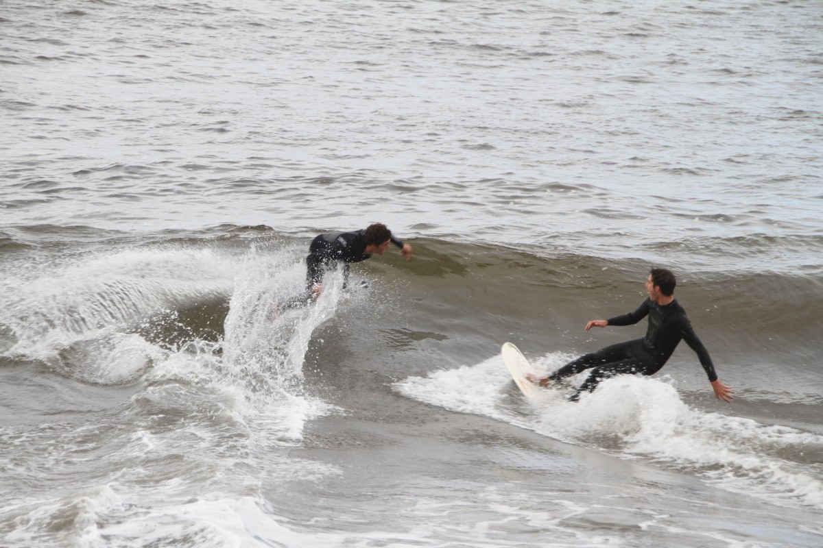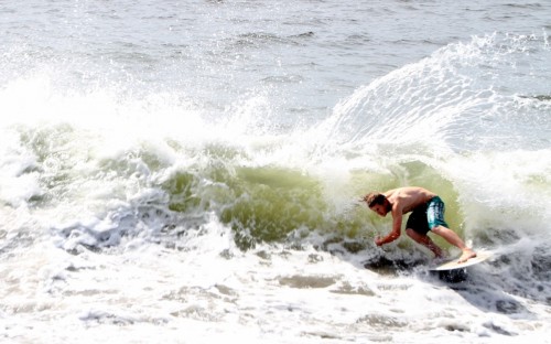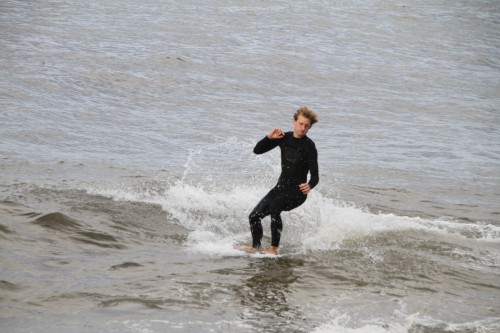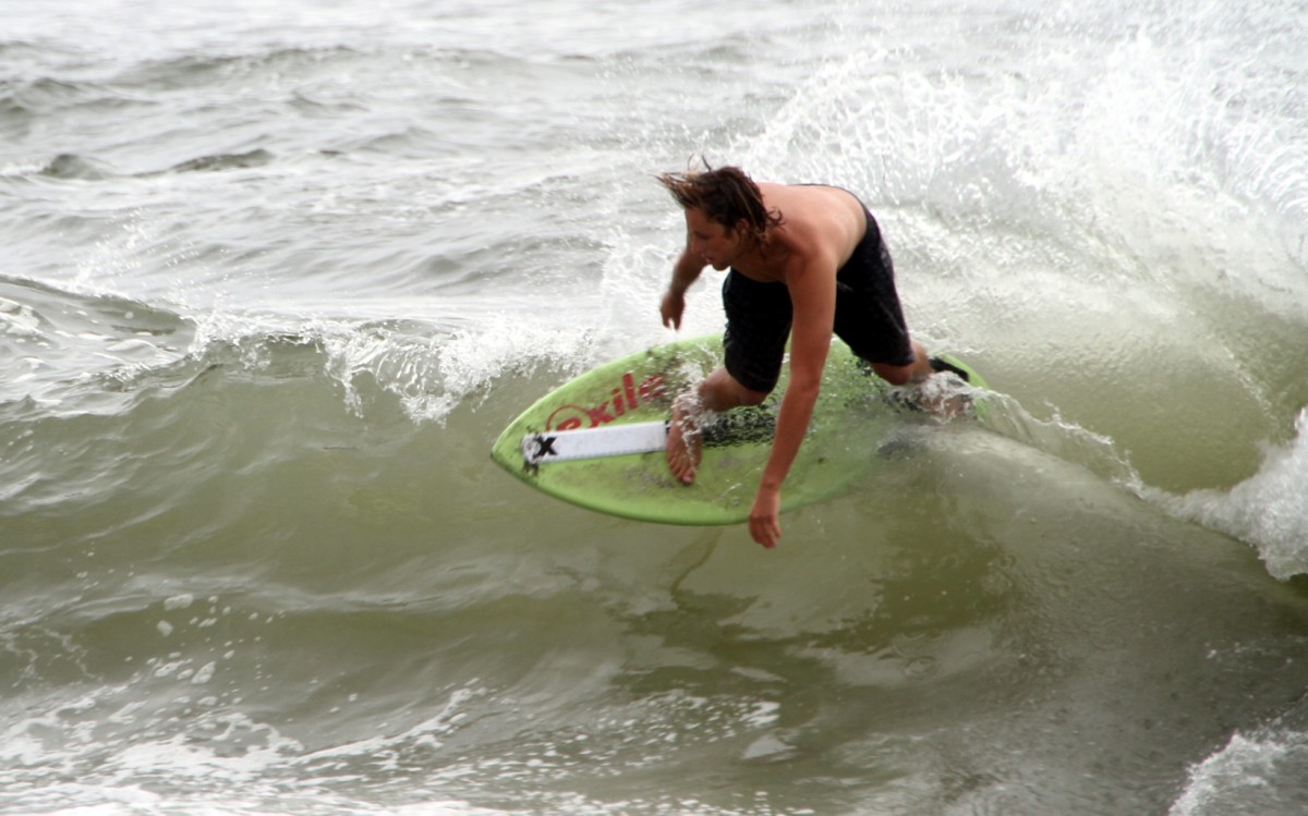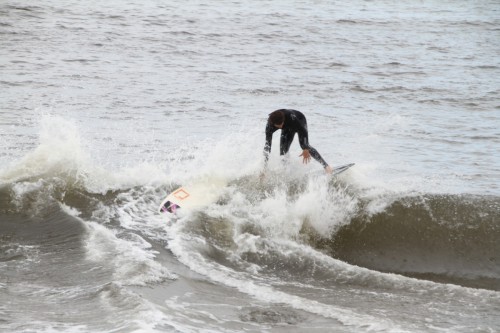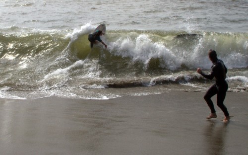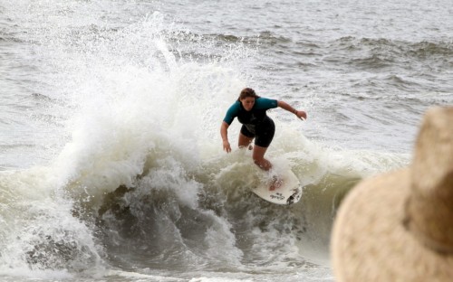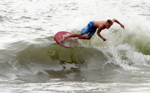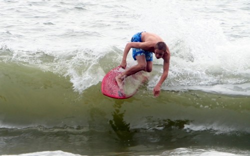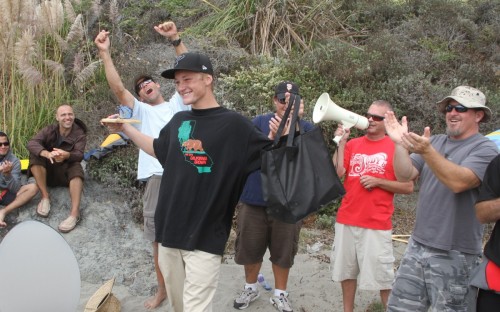 When the heat finally ended, serious debate ensued which led Colin to proclaim that we were at a stalemate. This has never happened before in cramik history, and should be rectified at future cramikfests by having an odd number of judges, but on Saturday we were stuck. Solutions were thrown out that included, but were not limited to, flipping a coin, roshambo, and fighting. We decided to run a super-heat, mano a mano with Deebo and Wyatt battling it out for the top spot. Though I don’t think this thrilled either competitor, the crowd seemed to enjoy it, and when it was over and the idea proffered to the crowd to extend the heat for an additional wave each, the answer was a unanimous cheer from the spectators.