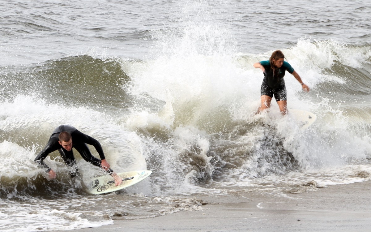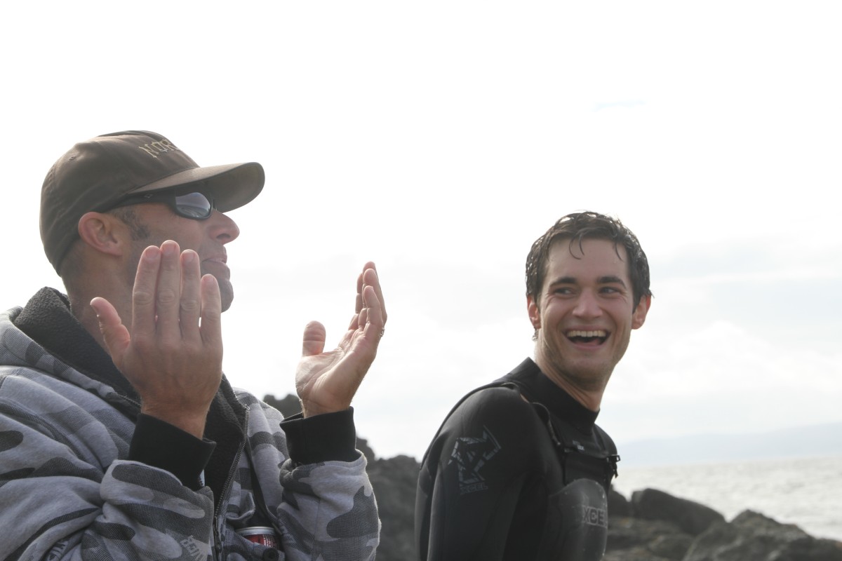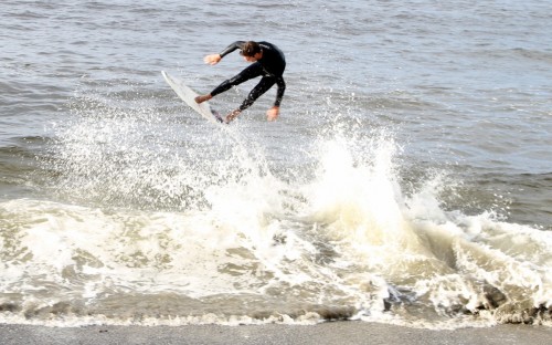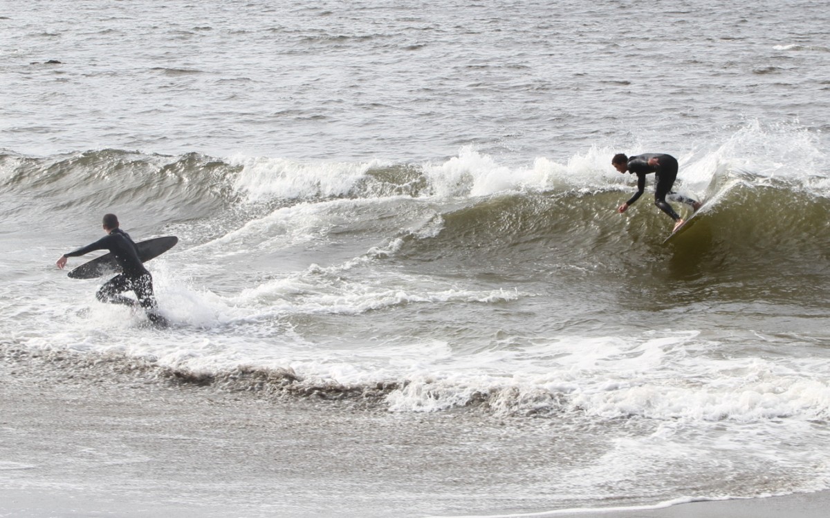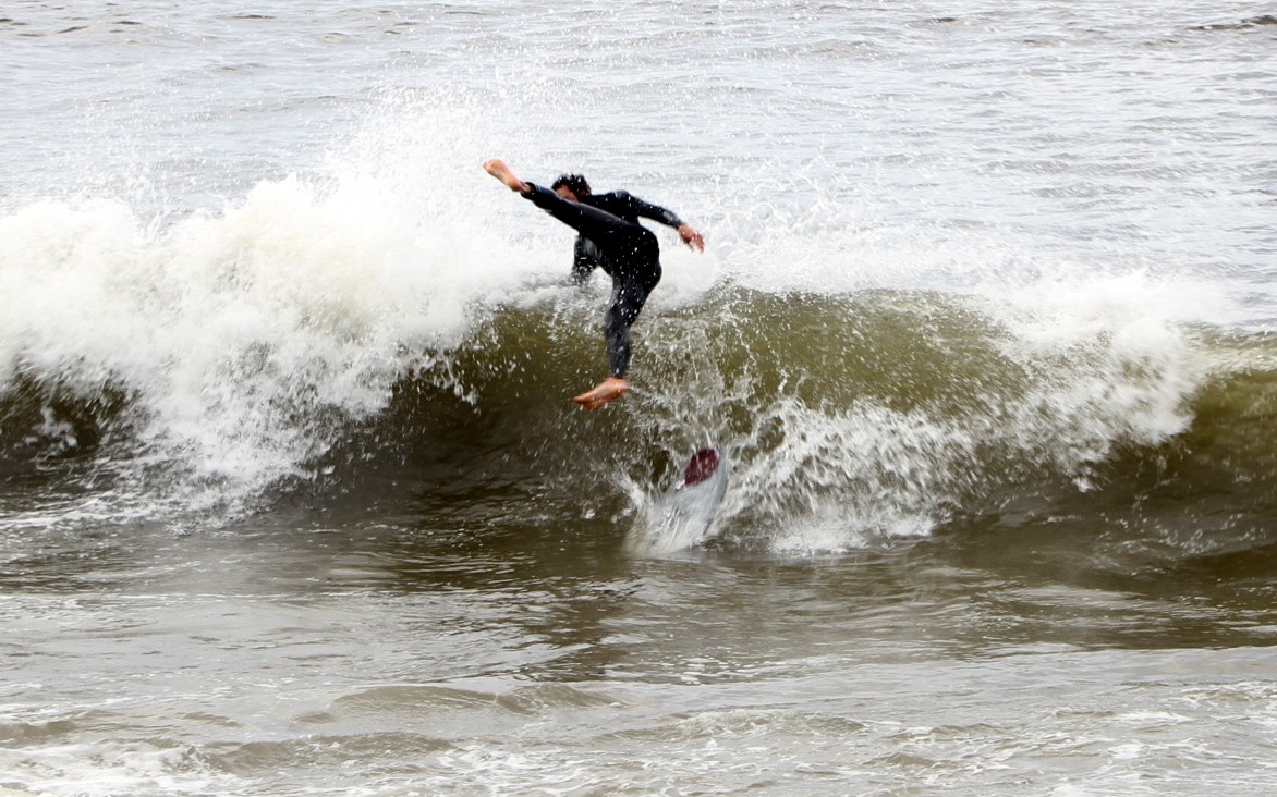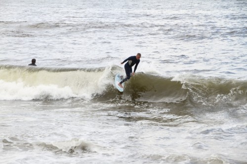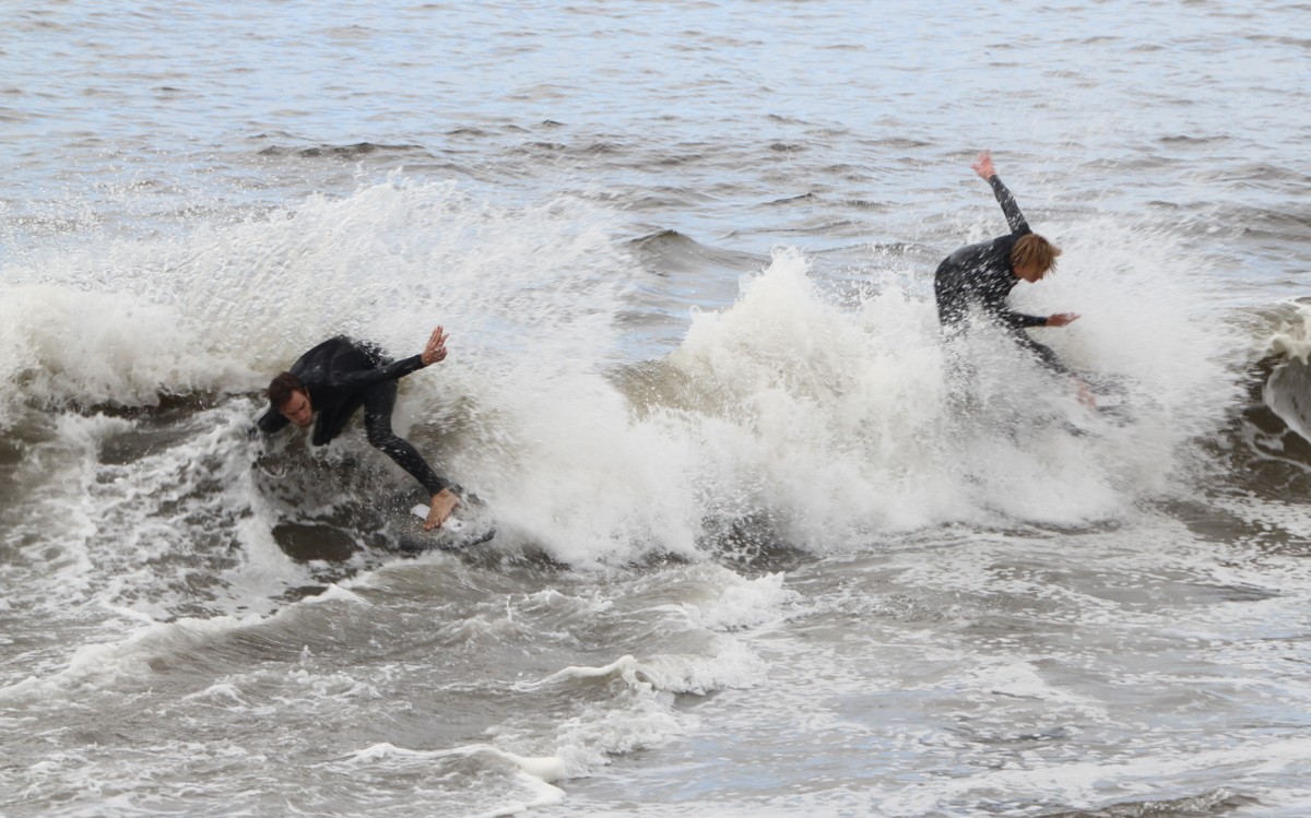 When the heat finally ended, serious debate ensued which led Colin to proclaim that we were at a stalemate. This has never happened before in cramik history, and should be rectified at future cramikfests by having an odd number of judges, but on Saturday we were stuck. Solutions were thrown out that included, but were not limited to, flipping a coin, roshambo, and fighting. We decided to run a super-heat, mano a mano with Deebo and Wyatt battling it out for the top spot. Though I don’t think this thrilled either competitor, the crowd seemed to enjoy it, and when it was over and the idea proffered to the crowd to extend the heat for an additional wave each, the answer was a unanimous cheer from the spectators.