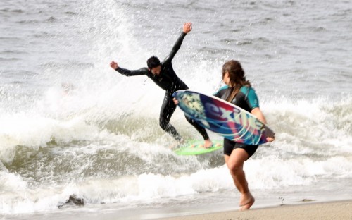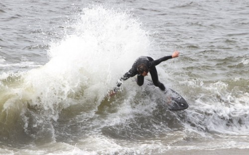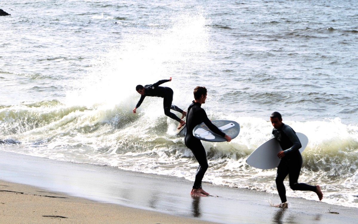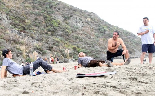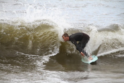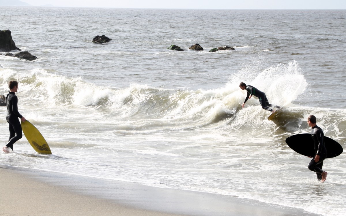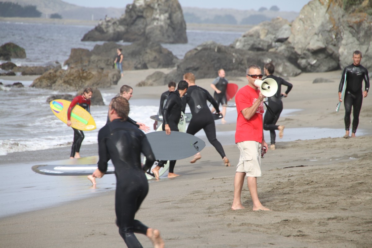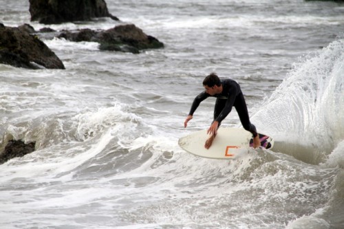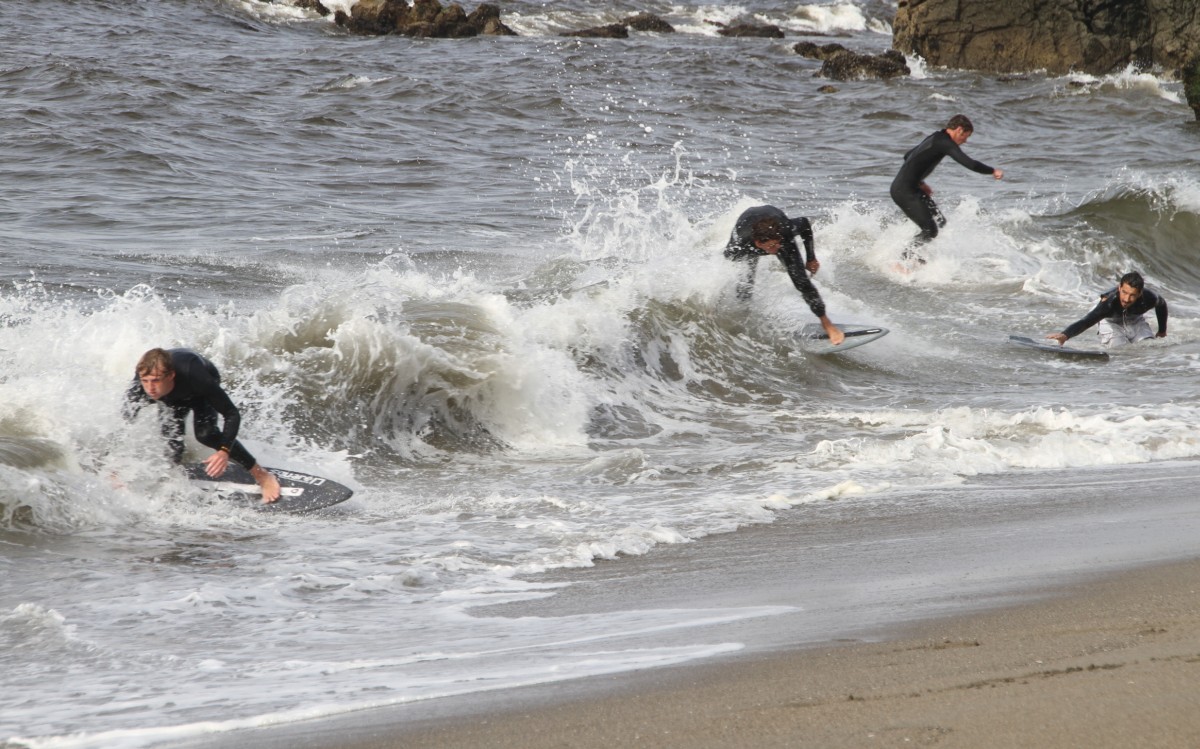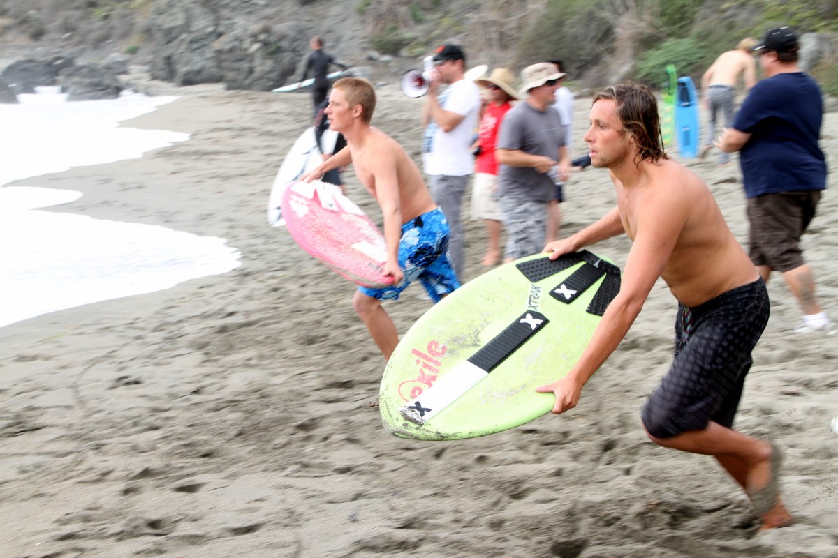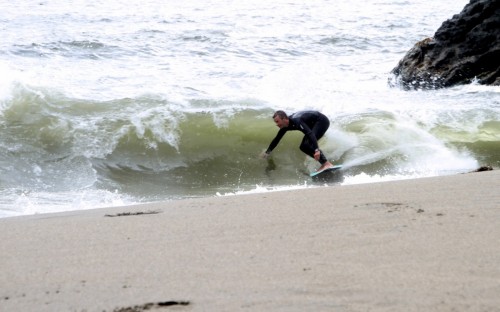 The Cove in Bodega Bay, for the 4th year in a row played host to the cramikfest, and though the conditions were downright awful for much of the event, you couldn’t have noticed by looking at the faces of the faithful who came to enjoy skimboarding in northern California with all their friends. The morning started out well enough, I received a text from Deebo saying that dub was offshore and swell was up from Friday. Some pretty clean and fun waves treated the early risers, which is always the case, right? But as the morning went on, a slight 5mph or so south dub was steadily wreaking havoc with the texture of the water and making for un-clean conditions. Knowing that tide was coming up (not a good thing today) and seeing conditions deteriorate in front of our eyes, we decided to start the heats earlier than anticipated and planned (as pointed out by Geoff).